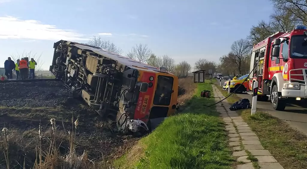 事發在當地早上7時前,當地警方指,一部貨車未有理會停車的交通標誌,駛入十字路口,與一列火車在距離布達佩斯東南140公里的一個城鎮相撞,導致火車出軌。