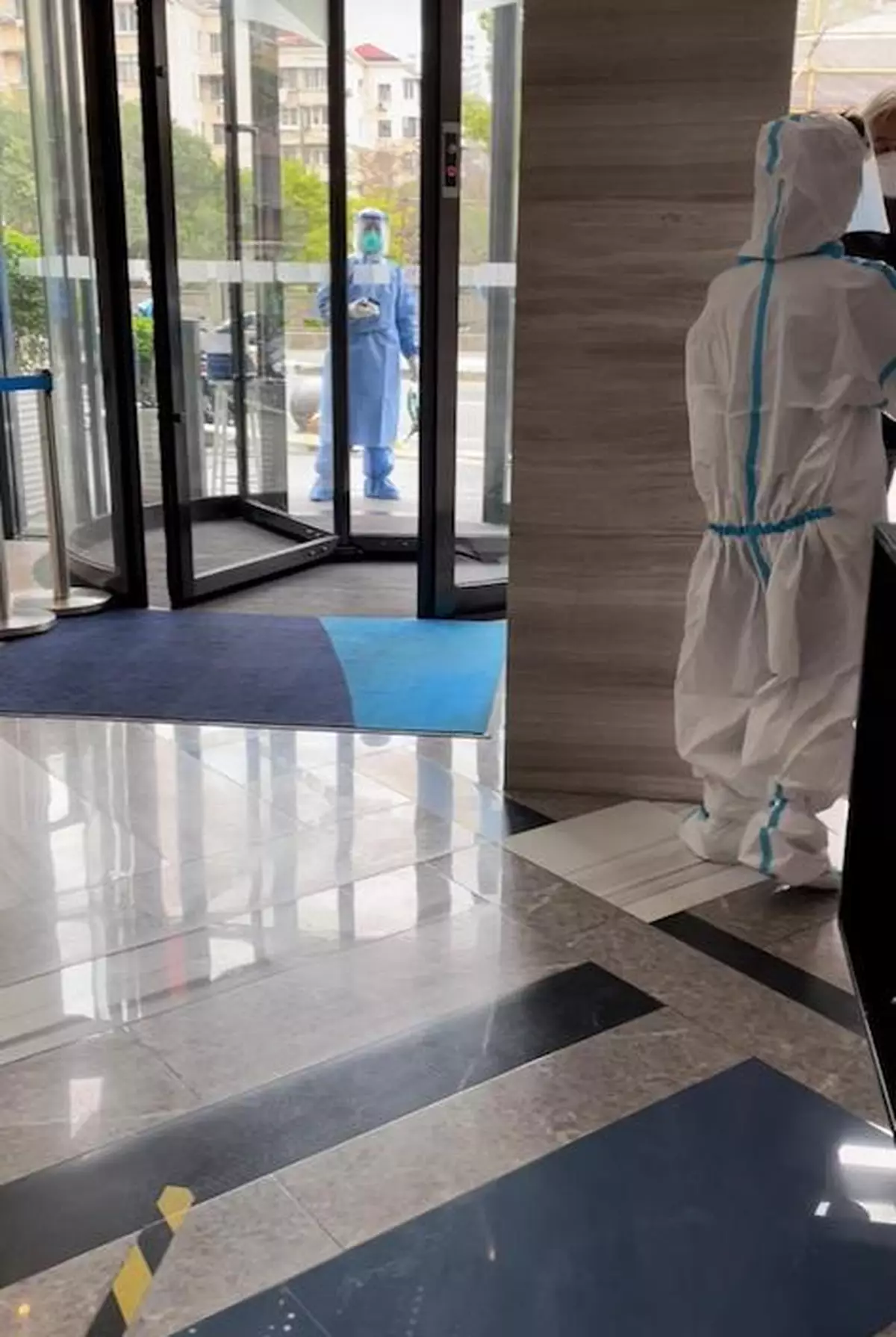 酒店排隊做核酸檢測有進步,每個時段只有3個人到大堂。