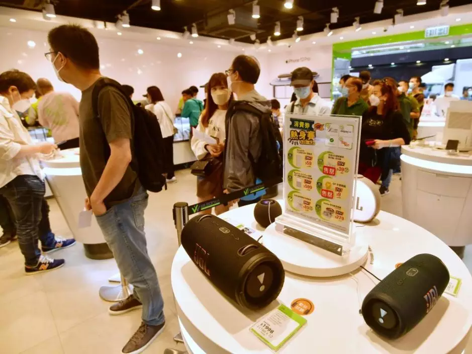 消費券推出後市面購物人流增多。
