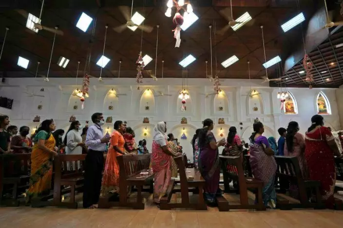 斯里蘭卡經濟面臨危機。圖為斯里蘭卡民眾赴教堂參加耶誕彌撒。