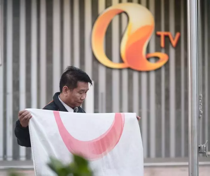 亞視臨時清盤人德勤宣佈今早遣散全體員工及停播,員工在接到遣散信後陸續離開。服務亞視53年的節目部高級節目執行主任程啟光今亦領了遣散信,他特意到門外向傳媒道別,稱「我愛亞視」。