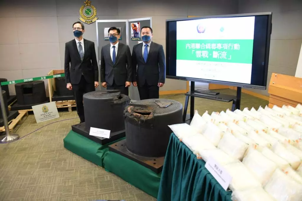 香港海關與國家海關總署緝私局、國家海關總署廣東分署緝私局,以及深圳海關緝私局,於3月開展一項代號為「雲戰──斷流」的聯合緝毒行動,行動中香港海關在香港國際機場及一個物流倉庫,檢獲約700公斤懷疑冰毒,估計市值約4億元。