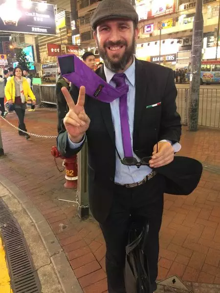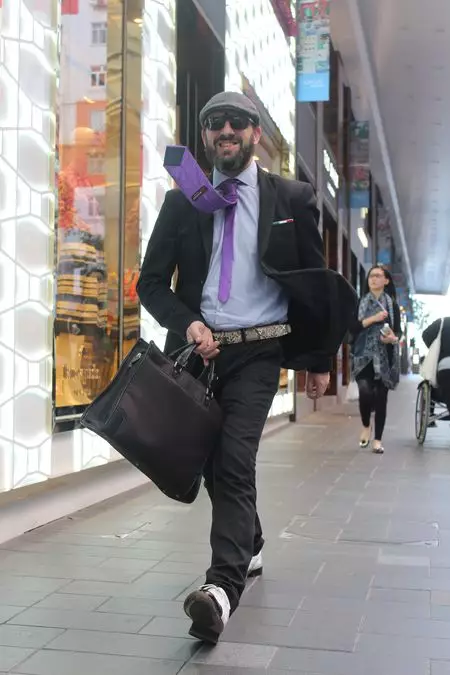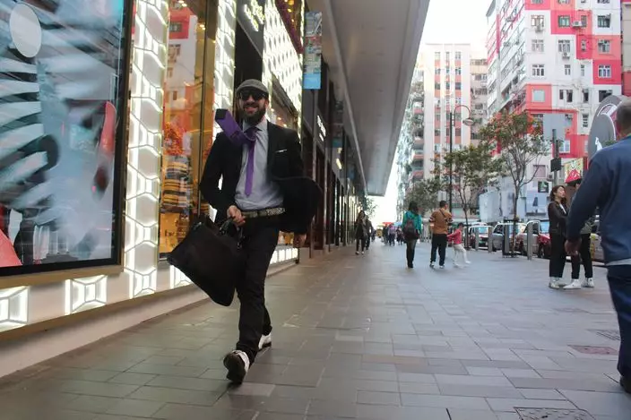 鬧市人頭熙來攘往,有藝術家留意了這一點,刻意在人頭湧湧的街頭表演「反其道而行」的行為藝術,以匆匆趕路的奇異造型,定格佇立在人群之中,吸引摩肩擦踵的路人停下腳步。他的行為,被影了下來,無論影片及相片都在社交網站瘋傳。