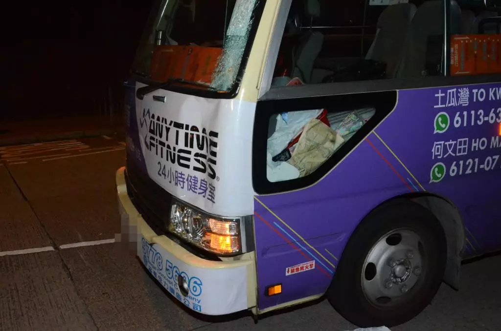 現場遺下一攤血漬及一對相信屬於死者的拖鞋,小巴左車頭擋風玻璃爆裂,車頭亦有損毀,警方其後到場,調查意外原因。
