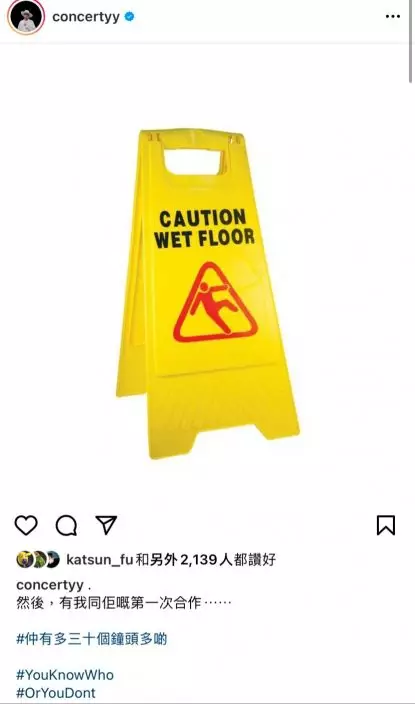除此之外,MC將於明日(14日)推出今年第一首作品《小心地滑》,為歌曲填詞的黃偉文今日在社交網預告,並貼出一個「小心地滑」的告示牌相片寫道:「然後,有我同佢嘅第一次合作。#仲有多三十個鐘頭多啲」,好消息一浪接一浪,一眾「賦二代」(粉絲暱稱)都相當興奮,十分期待新歌的來臨,並留言為偶像送上祝賀。