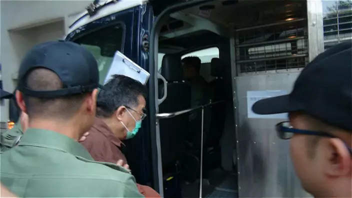 劉夢熊身穿棕色囚衣、戴上口罩,腰纏鐵鏈,以衣服遮蓋扣上手銬的雙手,並由一名懲教署人員以白色膠板遮擋劉的面部,押解下登上囚車離開醫院,送往荔枝角收押所繼續服刑。