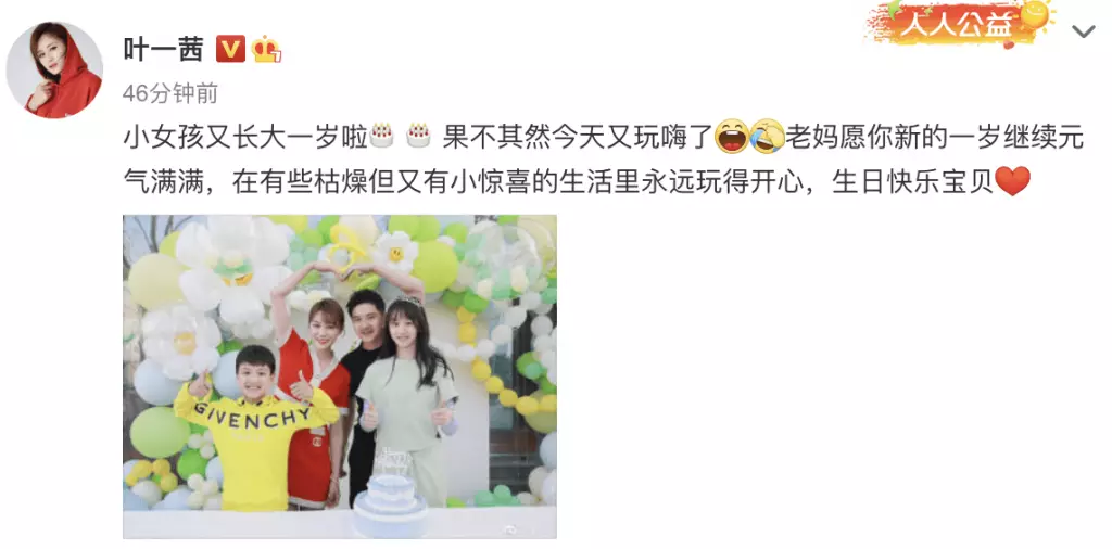 日前,田亮就特別在微博發文為Cindy慶祝14歲生日,他寫道:「生日快樂我的寶貝,老爸希望你可以繼續創造屬於你的小小世界,探索人生的樂趣」,而媽媽葉一茜也感慨道:「小女孩兒又長大一歲啦,果不其然今天又玩嗨了,老媽願你新的一歲繼續元氣滿滿,在有些枯燥但又有小驚喜的生活里永遠玩得開心。」