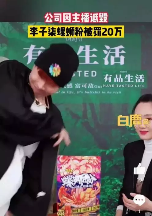 一間名為「成都抖咖文化傳播有限公司」的企業日前被列為經營異常。此前,該公司因「詆毀李子柒柳州螺螄粉」,被行政處罰20萬元(人民幣.下同)。事件起因為該公司合作網絡主播帝師,在抖音直播間為螺絲粉產品直播帶貨,期間帝師將「好歡螺加臭加辣螺螄粉」與「李子柒柳州螺螄粉」並列擺放展示,之後竟將後者甩進垃圾桶。