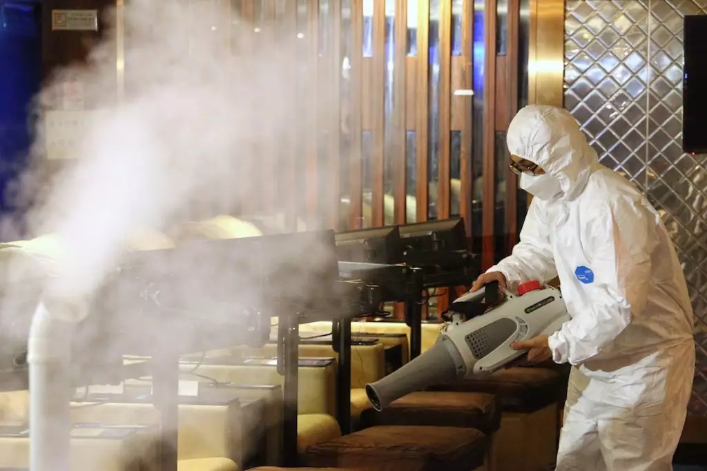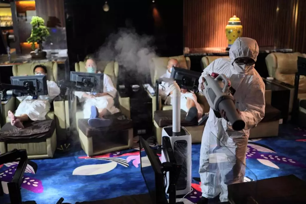 按摩院員工仔細消毒店內每一角落,為明天(4月21日)復業做足準備,望員工日後能夠安心上班之餘,顧客亦能安心享用服務。