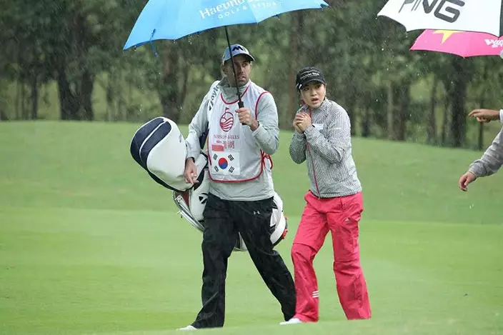 世界女子高爾夫錦標賽第一輪正式比賽。第一輪及第二輪賽事採取雙邊開球,其中個人賽在兩輪賽畢後,排名前60位(含並列)的球手才可晉級週末的比賽。上午比賽沒多久,就開始下雨,但球手熱情不減,仍然冒雨堅持打球。最後因為雨勢過大,比賽中止,最終於下午兩點開始恢復比賽。