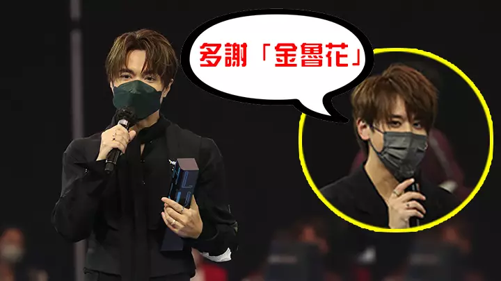 姜濤領獎時講笑多謝「金魯花」。