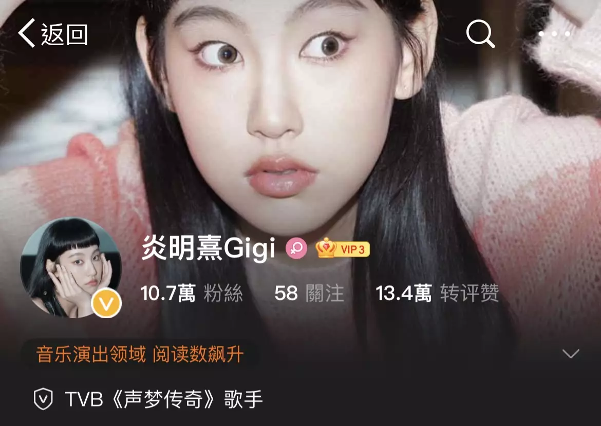 無綫電視與內地芒果TV合辦,聯同《我是歌手》原班人馬炮製的音樂節目《聲生不息》明晚(24日)首播,《聲夢傳奇》人氣王炎明熹(Gigi)是參賽者之一。Gigi獻唱已故香港女歌手陳僖儀作品《蜚蜚》,她雖然出場前謙稱自己是負責讓賽,但獲製作組讚為「TVB的驕傲」,一獻聲便成功懾住全場聽眾心靈,歌聲有超強感染力,獲全場掌聲。