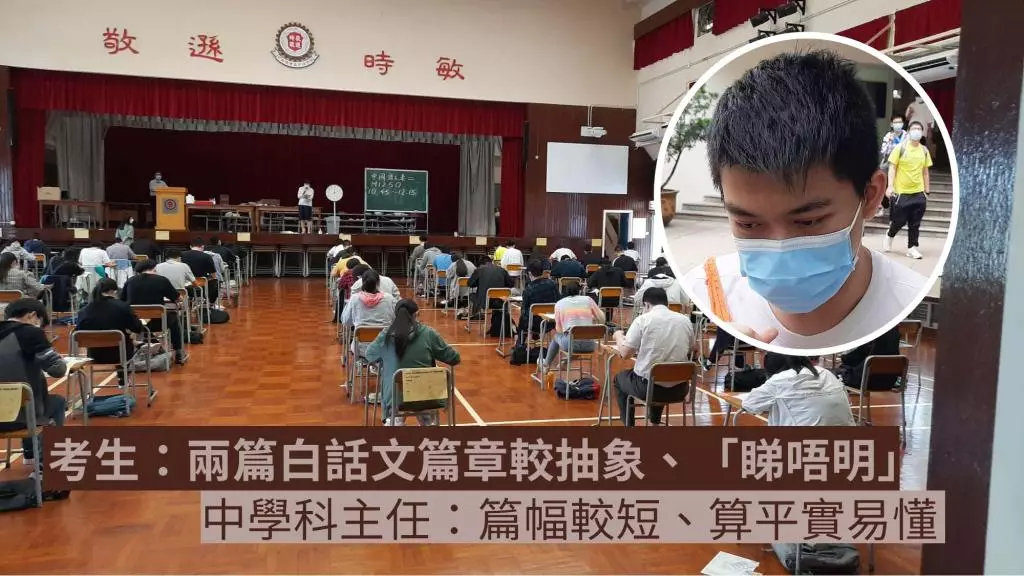 考生:中文科兩篇白話文「睇唔明」,科主任:已算平實易懂。