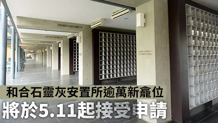 食物環境衞生署今日(27日)宣布,將編配粉嶺和合石靈灰安置所第六期A座1萬多個新建的可續期骨灰龕位,並於5月11日至6月10日接受申請。