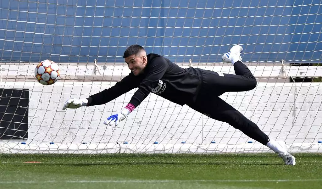 維拉利爾門將魯尼在歐聯四強操練時狂練飛撲。Reuters