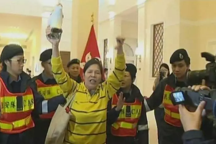 禮賓府早上十時開放,過百人冒雨排隊等候入場。「女長毛」雷玉蓮到場示威,她在禮賓府內高呼口號,批評高鐵工程亂花公帑,卻沒有改善醫療服務,工作人員要求她離開。她離開時將「大白象」錢罌扔到地上,碎片散落地面。