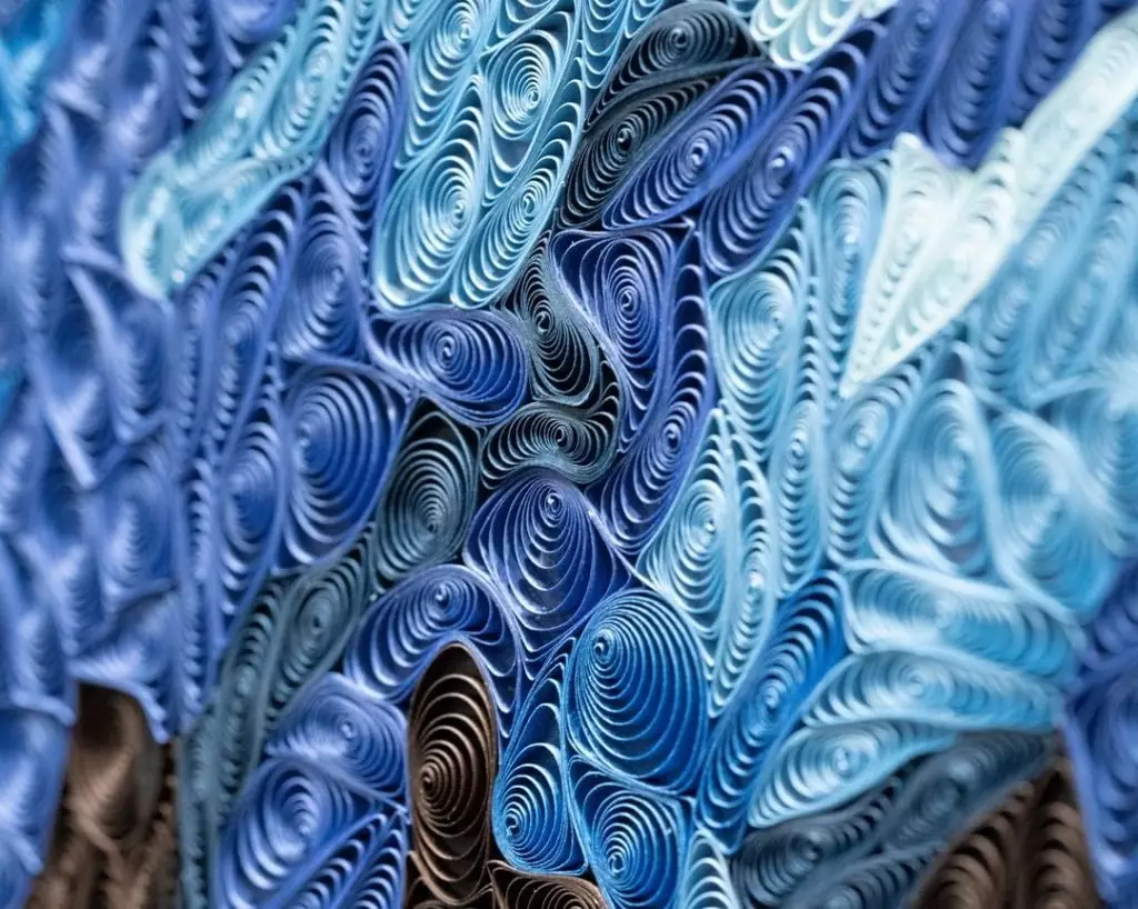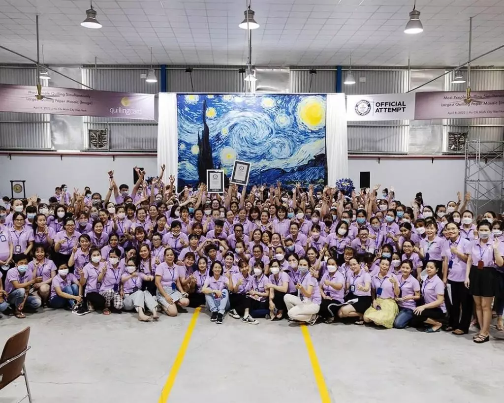 美國麻省一家賀卡公司Quilling Card,日前在越南的總部號召300人,共同製作出一幅5米乘5米的《星夜》,他們透過藝術紙捲起紙條拼貼馬賽克,共利用了18種顏色,共19萬1948張紙條捲起而成,若將其連接成一條線,長度達64公里, 打破健力氏世界紀錄。
