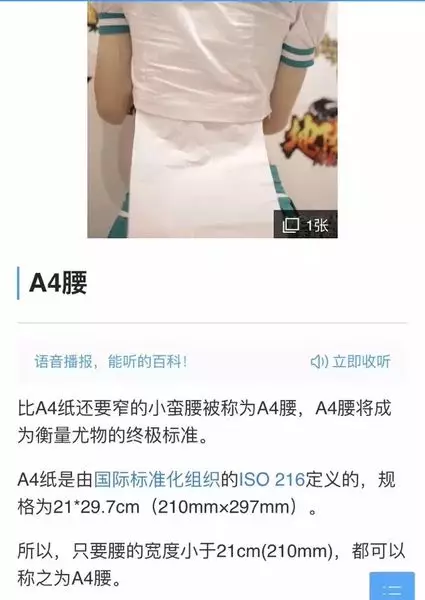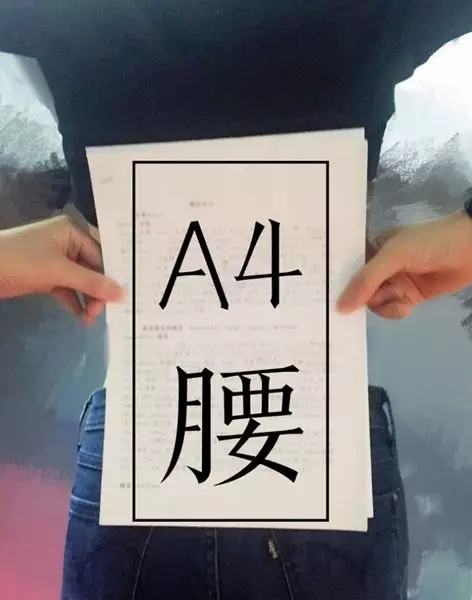 所謂的「A4腰」即腰身要比一張A4紙還窄,當然,是和A4紙的寬度210mm比較。所以女士們都會拿出一張A4紙,擺在腰間自拍,看看自己是否符合「A4腰」標準。