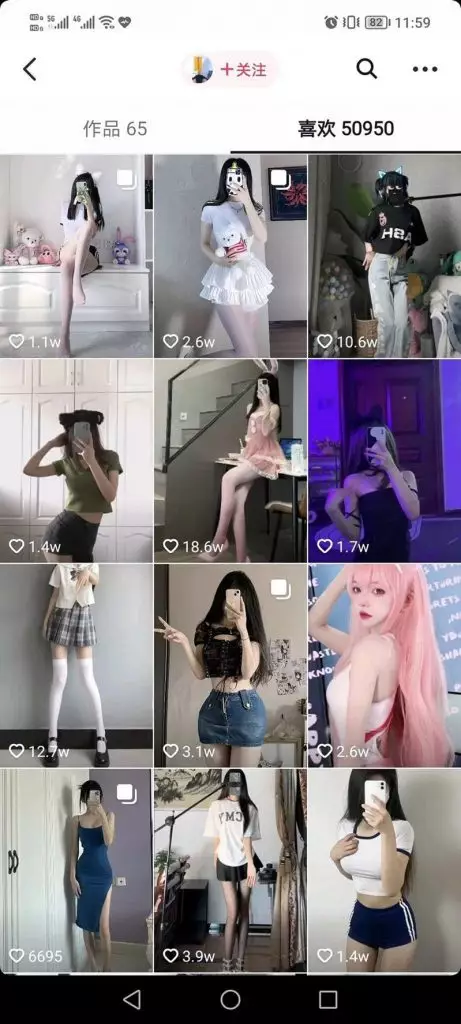 而再仔細研究「宣城師傅」的主頁,你不難發現除了書法作品和直播等內容,「宣城師傅」還有置頂的三張自拍照,但沒有想到的是,來到「喜歡」界面,竟看到「宣城師傅」讚好了5萬多張後生靚女照片。