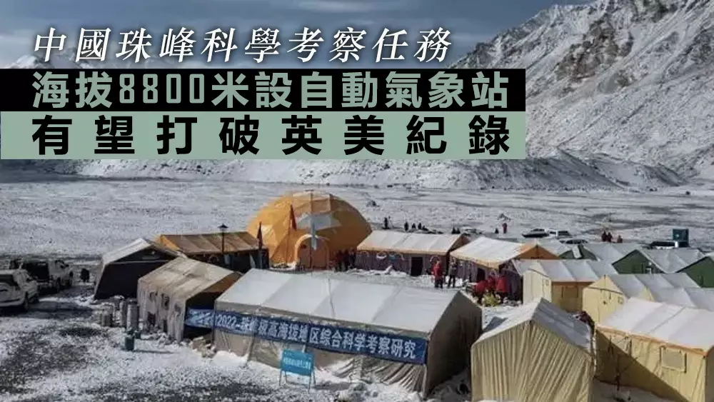 中科院青藏高原研究所的科學考察隊將在珠穆朗瑪峰海拔8800米位置,架設一座重達50公斤的自動氣象站,有望成為世界最高的自動氣象站,此一氣象站設施將可獲取實測數據。這將是全球唯一的極高海拔氣象紀錄。