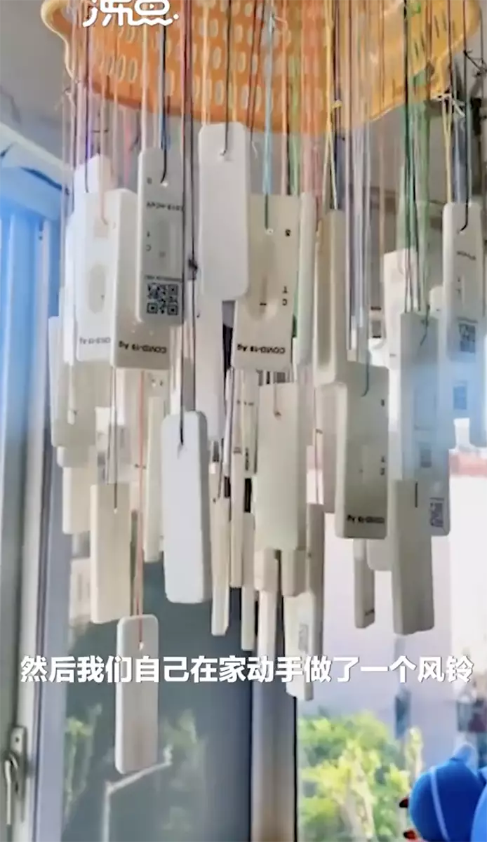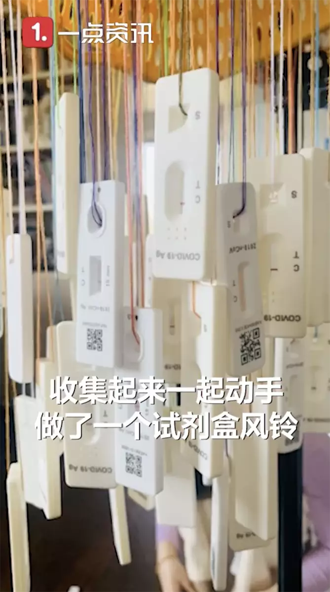 隨著新冠肺炎疫情不斷蔓延,相對核酸檢測較為方便做自測的「抗原測試盒」也應運而生,不少民眾都會購買或是獲派發進行自測。在疫情嚴峻的上海,近日有不少民眾使用抗原試劑進行病毒自測,更有民眾用發揮創意,用用過的抗原試劑製作成「風鈴」等工藝品,一方面廢物環保利用,另一方面也為抗疫生活留下紀念。