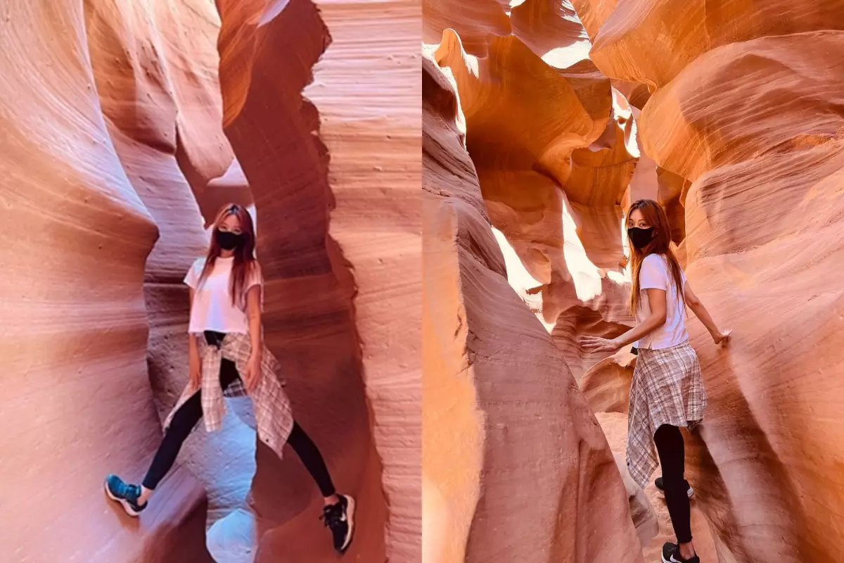 近期韓藝瑟和男友拍拖前往美國旅行,在社交網晒出在當地自駕遊吃喝玩樂的打卡照片,高調曬恩愛。不過日前她在美國西部三大峽谷之一的羚羊谷(Antelope Canyon)的一輯爬山打卡照,卻因為明顯在觸摸和踩踏峽谷的岩壁,而惹來非議。