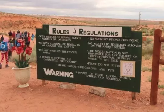 羚羊谷有大型告示牌講明不准攀爬(網上圖片)