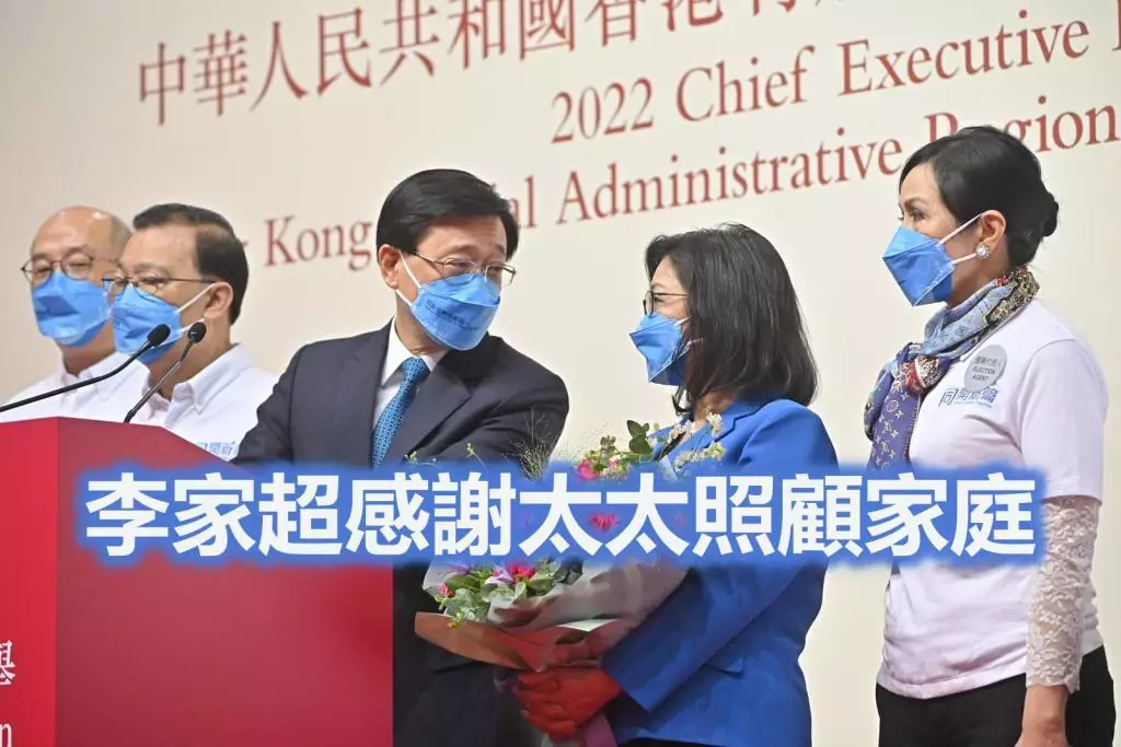 李家超當選下任特首後接受傳媒提問,在台上談到太太時表示,選舉工作是個人問題,不需要家人參與,但感謝他們的支持。他多謝太太林麗嬋盡心盡力照顧家庭時一度哽咽。