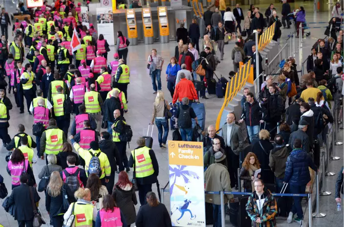 法蘭克福機場有大批安檢人員發起罷工,以爭取提高工資,最少 74 班航機取消,大批旅客滯留。機場沒有足夠夠人手進行安檢,安檢通道出現人龍,呼籲旅客不要再前往機場。機場全部 183 個安檢通道只有 20 個運作,僅能為轉機旅客安排登機,不過 1,300 班機大部分仍能如期出發。