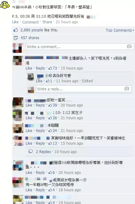 不過網民就Like爆,影片上載facebook未夠一日,就有2千人Like。仲話林小珍忍笑好可愛,又讚兩位都咁好笑容,睇完NG片,全日都夠晒醒神。