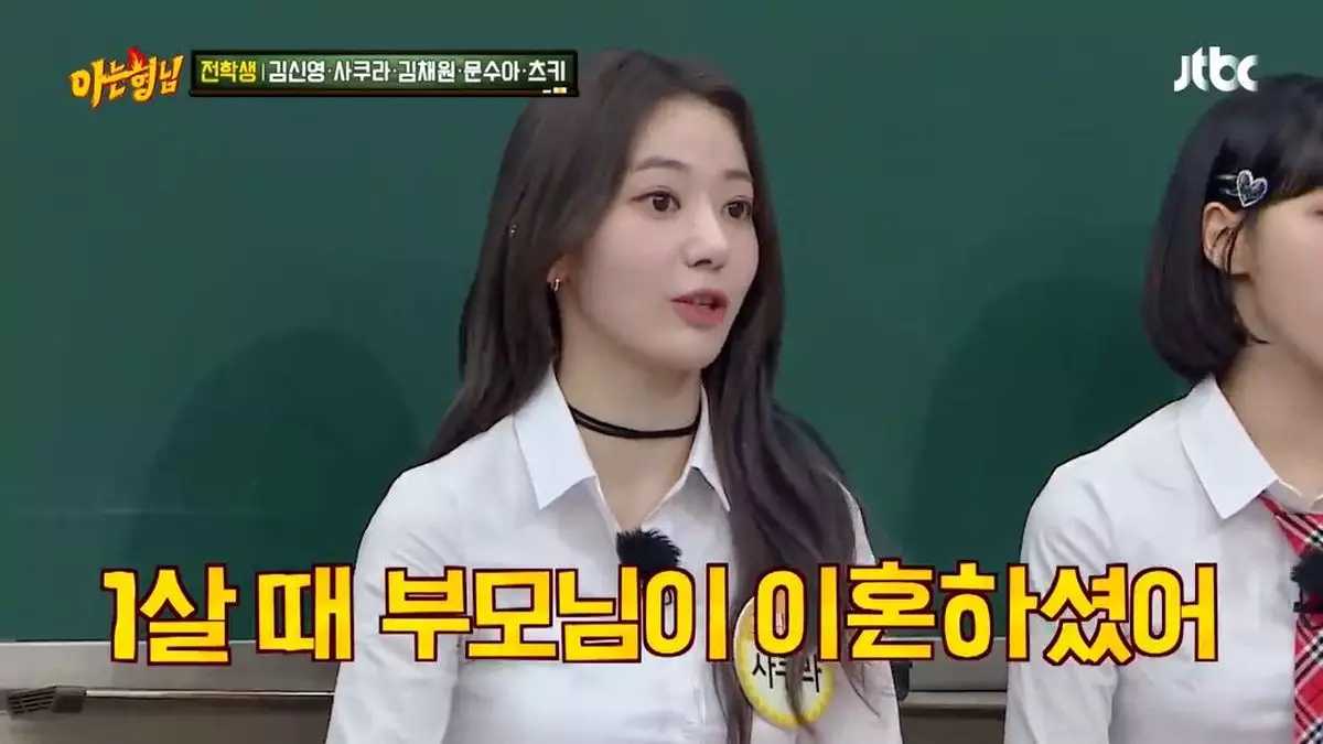 宮脇咲良出道11年,一直鮮有談及家人,不過她在節目中自爆1歲那年,父母離婚,眾主持聞言十分驚訝,其中徐章焄安慰表示:「沒關係,有自信地說出來。」她就透露從來沒有見過爸爸,連照片都沒有見過,所以不知父親長相。後來在日本舉行首個握手會,就有一名男子向她說:「我為你加油」,她自言二人握手時,就直覺對方就是自己的父親:「後面那位像他的母親,即是我的嫲嫲,她問我『你記得他嗎』,當時我聽到這句話後,就覺得那人肯定是我的爸爸。」不過她之後沒有再見過對方。