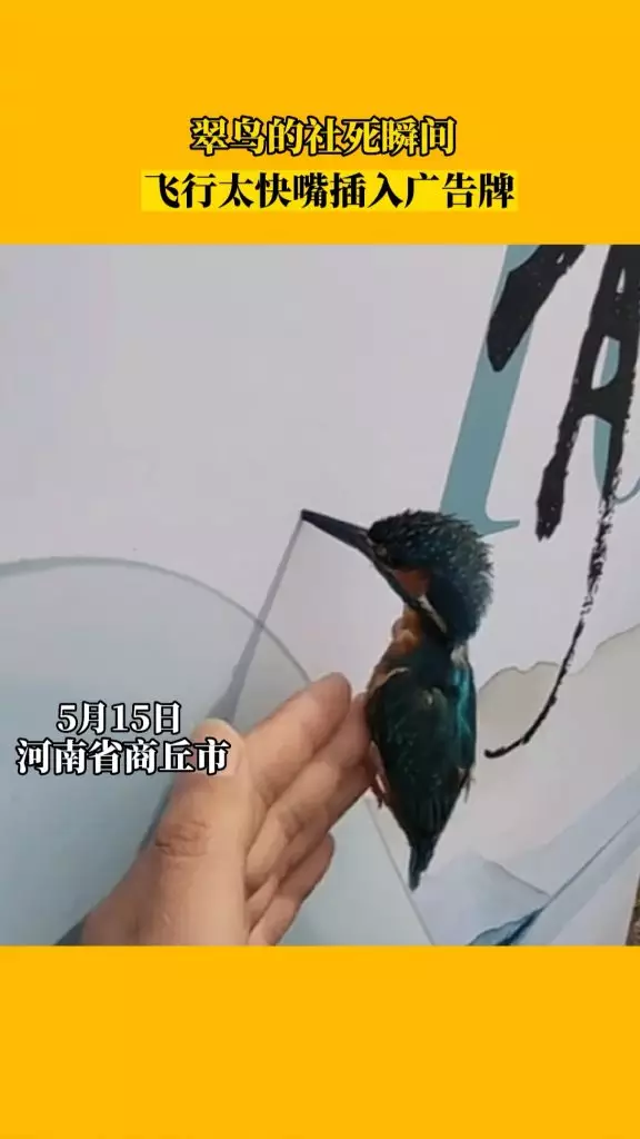 如今動物生存的環境越來越差,不少新聞報導都指出,因高樓大廈玻璃反光,令很多鳥類誤撞玻璃受傷甚至喪生,愛護動物人士呼籲社會更多的關注相關問題。近日,在內地河南就有一隻翠鳥疑似飛得太快,誤將鳥喙插進廣告牌,令自己動彈不得,膠著之際,幸好有熱心途人助牠離開,逃出生天。