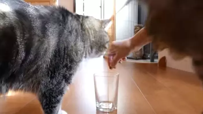 片中一隻貓貓先用探頭入杯,然後以右爪拿食物;另一隻貓則用左爪。網民看完片段後大呼可愛,即時做實驗,不過並非每人都成功。