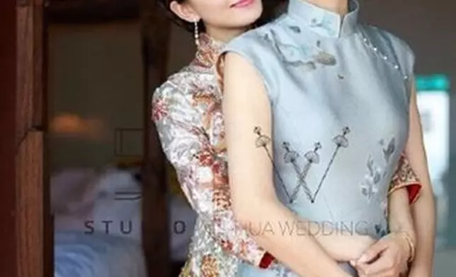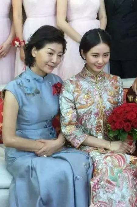 劉詩詩的媽媽昨日以一襲淡藍色刺繡改良的旗袍亮相。在敬茶、拍攝全家福時坐在詩詩身旁,網民發現不論是樣貌、高挑身材與優雅氣質都完全不輸給新娘子。