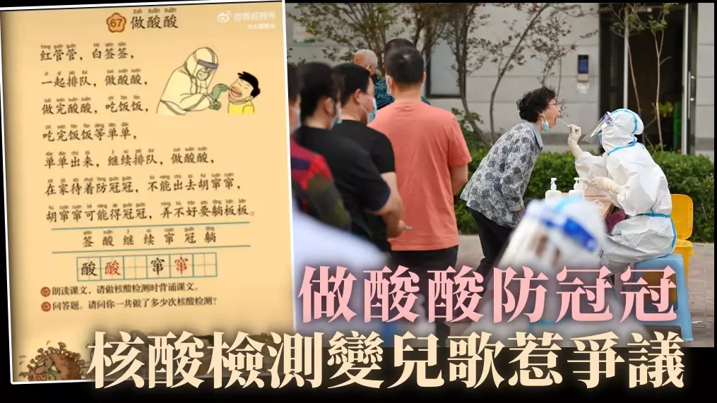 不少微博網民近日轉發有關推廣做核酸檢測的兒歌,歌曲灌輸孩童「做酸酸(核酸)、防冠冠(新冠)」,有網民認為這種宣傳太弱智,呼籲「救救孩子」。