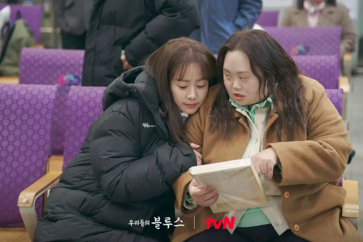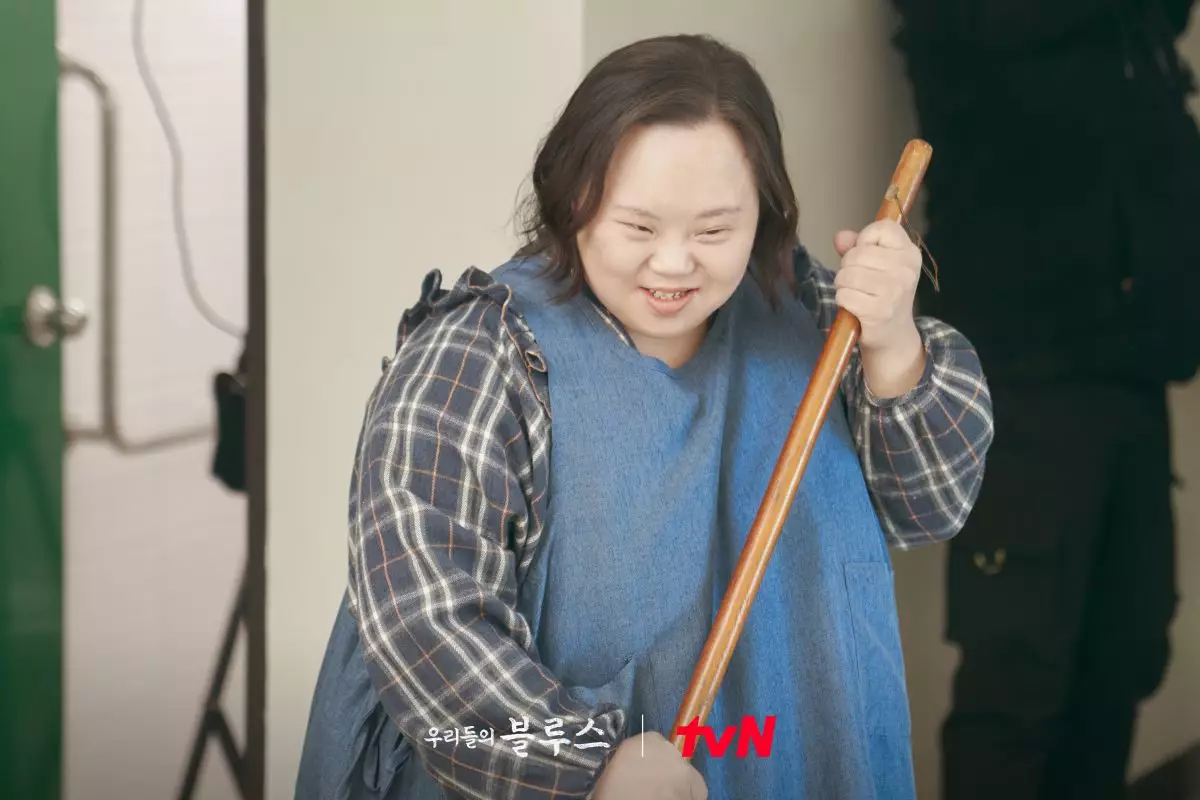 在《我們的藍調時光》中由韓志旼飾演的角色「李英玉」,來濟洲島成為新手海女,性格開朗活潑的她,卻被許多謠言所追隨。在14集就揭開英玉原來有一位患有唐氏綜合症的雙胞胎姐姐英希,也揭開她的身世故事。而這次劇組找來的演員鄭恩惠,也是韓劇史上首次採用真正有唐氏綜合症的演員,非常破格的嘗試也掀起廣泛回響。