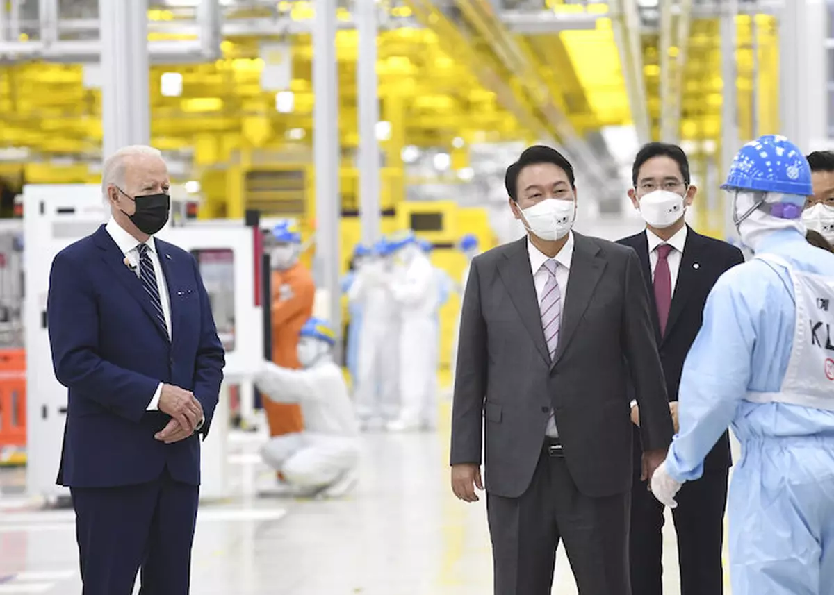 拜登在南韓參觀三星工廠。AP圖片