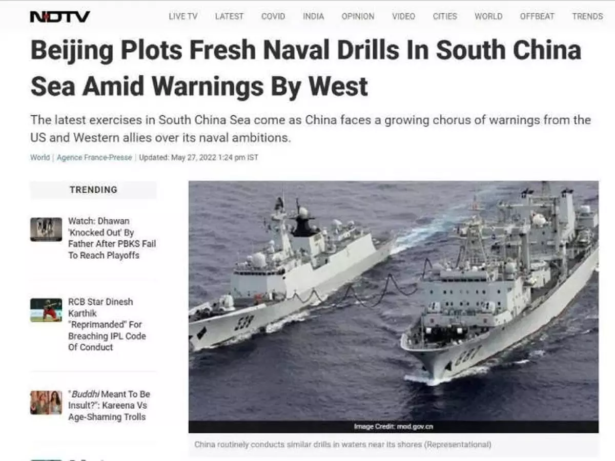 印度新德里電視台網站文章的標題為「在西方的警告下,北京計劃在南海進行新的海軍演習」。報道稱,這些演習計劃在中國海南省海岸附近不到25公里(15.5英里)處的海域舉行,正值美國對中國在從南海到太平洋島嶼地區日益增長的軍事和經濟存在發出警告之際。中國海事部門周四在一份聲明中表示,航行警告涉及大約100平方公里的區域,將禁止海上交通5個小時。