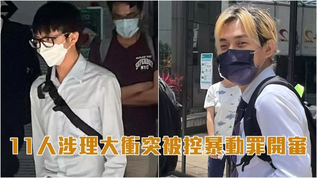 11名被告依次為25歲地盤管工歐陽浩明、28歲攝影師翟柏龍、19歲學生湛沛林、18歲髮型師陳思進、21歲文員陳子宏、25歲無業鄭太君、28歲音樂教師莊正、19歲學生周嘉慧、19歲學生周諾澄、24歲音樂教師簡澧然及22歲酒吧店員黎子欣,同被控於2019年11月18日在窩打老道與咸美頓街之間的一段彌敦道參與暴動。