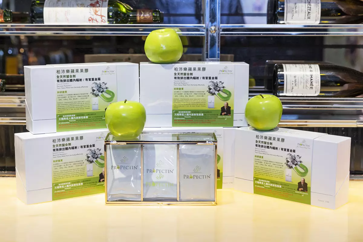 醫藥級蘋果果膠是指蘋果含的果膠濃度比一般蘋果高,而其中醫藥級品牌—柏沛樂蘋果果膠(ProPectin)是由波蘭克拉科夫最高質量的蘋果提煉的,由於獨特的栽種環境,比一般蘋果含果膠濃度高65%。加上柏沛樂每包含3克純蘋果果膠粉末,相當於9顆波蘭蘋果的份量。經科學家研發出六道專利技術提煉成水溶性的納米粉末,才可直接滲入血液,螯合血液中的重金屬毒素,達到排毒、消炎、減肥去水腫的效果。詳情以參考www.propectinlife.com