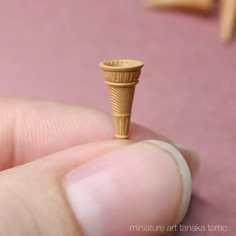來自日本的手作藝人Tomo Tanaka(田中智)創立了自己的個人品牌nunu’s house,並在Twitter上分享一系列手作微型小物,她做的迷你美食種類多樣,每一個都讓人讚不絕口,經常讓網友直呼「實在太精緻啦!」在他最新發佈的作品中,就包括一台「迷你雪糕機」,而且不單單是機器變迷你了,就連裝冰淇淋的雪糕筒也很迷你,如果不使用鉗子夾基本是拿不了。