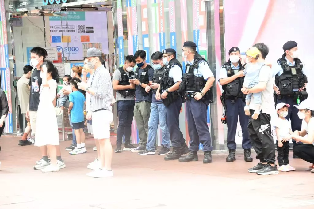 在銅鑼灣港鐵站外、怡和街、東角道一帶,適逢端午節連假第二日,市民如常逛街消費,未有出現人群聚集。有多名軍裝警員駐守,間中截查市民身份證及隨身物品。