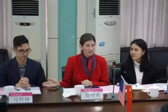 美國駐廣州總領事館領事葛明希(中)。