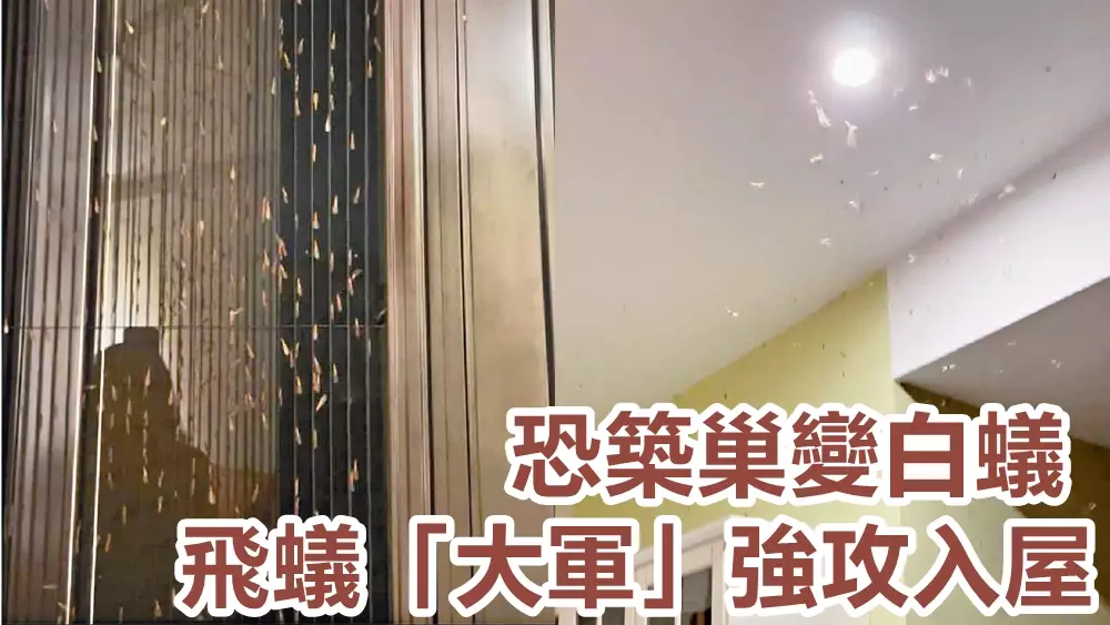 居於上水祥龍圍邨的Amy接受《頭條》訪問,指近日經常下雨,傍晚開始就關窗,以防飛蟻入屋。上月尾一個晚上,有朋友到她家吃飯,朋友覺得家內翳焗,Amy沒為意下開窗。怎料一會兒後,滿屋飛蟻,飛來飛去,「除了圍住燈光飛,牆上和電視櫃都是密密麻麻的飛蟻,估計超過二、三百隻,好得人驚。」Amy立即熄燈,希望飛蟻自動飛走,十分鐘後再開燈,情況依然嚴重,「唯有用掃把盡量趕牠們飛出窗口,地下又有很多飛蟻屍體,好恐怖。」她又說,當晚被嚇得不敢入睡,「經常覺得每個角落都有飛蟻,以前都有飛蟻入屋,但這一次情況最誇張。」