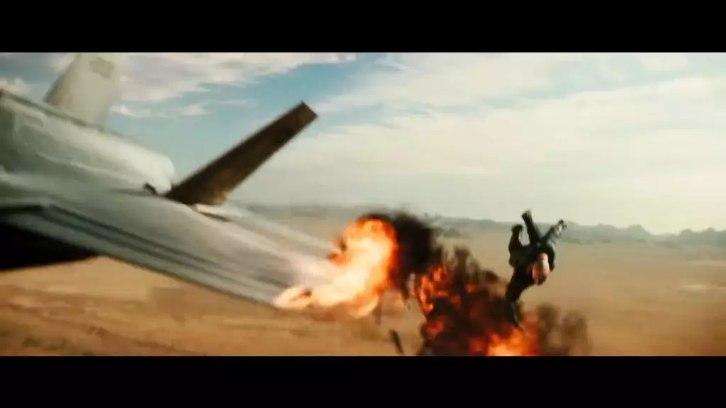 Black Adam單手一揮就打爛機翼,令戰機爆炸。