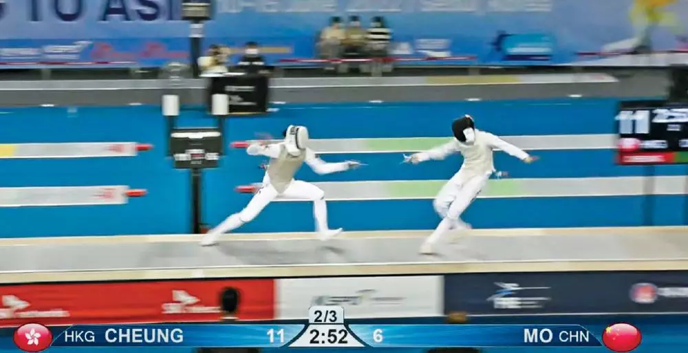 張家朗在決賽遇上莫梓維,雙方初段放慢節奏,但張家朗其後搶回主動權,接連搶攻得手,控制局面,終以十五比六摘下金牌,自一六年後再次登上亞洲冠軍寶座,並成為「重劍天后」江旻憓後,歷來第二位擁兩面亞錦賽金牌的港將。