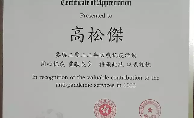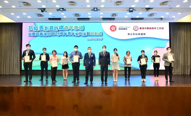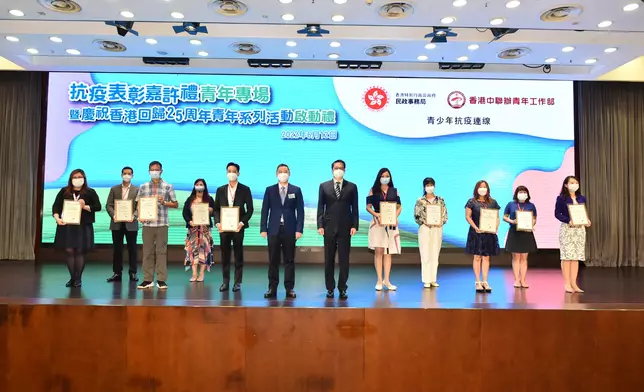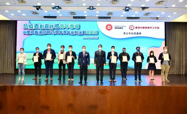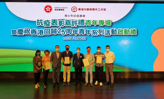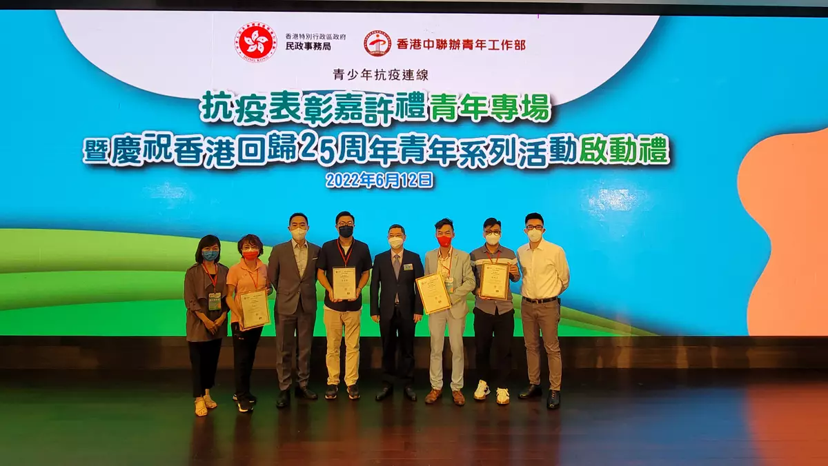 為嘉許在2022年2月-5月期間携手共同抗疫! 由民政事務局、中聯辦青年工作部及青少年抗疫連線共同主辦、中華全國青年聯合會秘書處擔任支持單位的「抗疫表彰嘉許禮青年專場暨慶祝香港回歸25周年青年系列活動啟動禮」於(12日)舉行,共136個團體與217位青年獲得嘉許並獲頒感謝狀,以鼓勵及表揚他們積極參與防疫抗疫活動。
