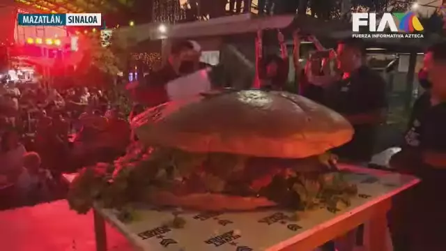 近年來不少以巨大著稱的食物打破世界記錄。近日位於墨西哥的城市馬薩特蘭(Mazatlan)迎來了第二屆的「年度國際漢堡節」(Annual International Hamburger Festival),而節日上最引人矚目的一幕就是一群廚師合力做出一個「巨型漢堡」並組裝起來,場面相當壯觀,創下全國記錄。