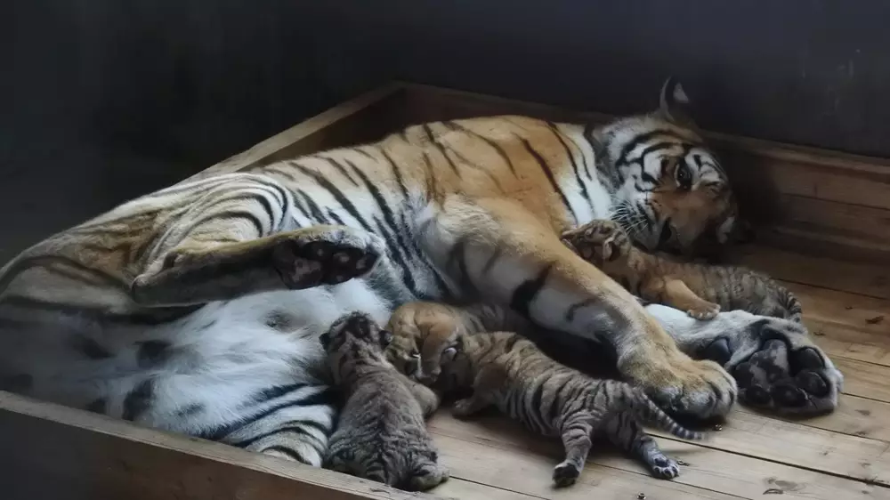 虎寶寶有3隻是雌虎、1隻為雄虎。虎媽分娩生產期間,飼養員格外上心,不但每天為母虎提供「月子餐」,在羊奶裏打上20個雞蛋,也會每天監測虎寶寶的體重,必要時進行人工補奶,保證虎寶寶茁壯成長。