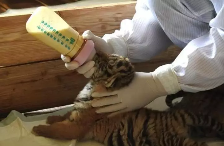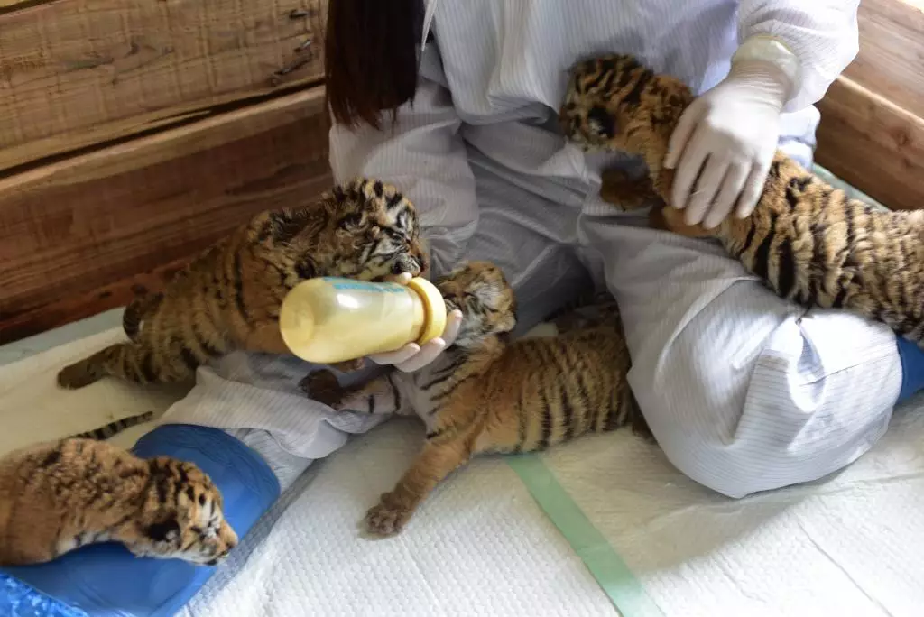 內媒指,5月是繁育中心母虎分娩生產的高峰期。部分東北虎初次當母親,沒有哺乳經驗下會遺棄幼崽,只能靠飼養員人工餵養。